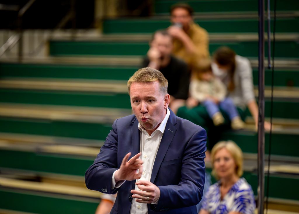 Via activiteiten met onze fanfare kwam Ruud zijn vrouw Isabel in Overpelt tegen. Hij kwam hier wonen en kreeg er drie (ondertussen ook musicaal actieve) kinderen. In 2012 stapte hij er mee in ons project om de fanfare nieuw leven in te blazen. Ruud nam het dirigeerstokje van de jeugdfanfare in handen en ontdekte dat dirigeren wel zijn ding was, maar dat je daar best toch wat meer technische en theoretische bagage voor hebt. Hij begon in 2013 aan de Genkse Muziekacademie met een opleiding ‘directie instrumentale muziek’. Met Kevin Houben als leraar studeerde hij er in 2016 af met ‘grootste onderscheiding’.